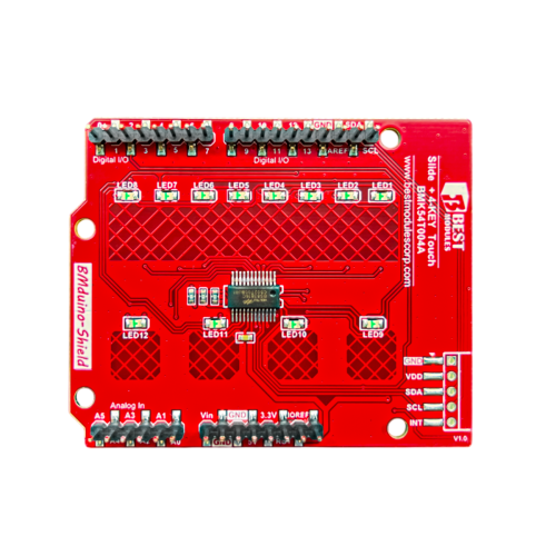 This board can be directly plugged into an Arduino UNO or our BMduino-UNO development board (such as BM53A367A). Simply align the header pins on the back of the BMK54T004A with the corresponding socket and press into place—no additional wiring required.
