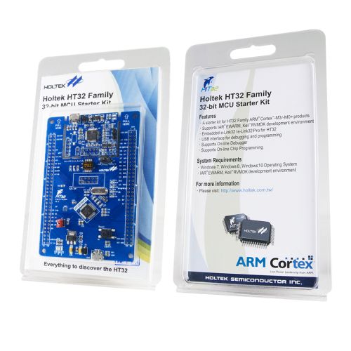 The HT32F50230 Starter Kit uses the 32-bit Arm® Cortex®-M0+ high performance, low-power microcontroller, and is designed to help new users get up and running and using this Holtek device in the shortest possible time frame. It provides a low-cost platform which together with the software development platform, also provides a complete solution from evaluation, programming to production.